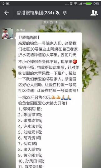 截至今天中午,业主阿姨家的三十多箱苹果已经完全售出。平日里看似不熟识的邻居们、家人们,在其他人需要帮助的时候一个接一个的站了出来,这让人非常感动。