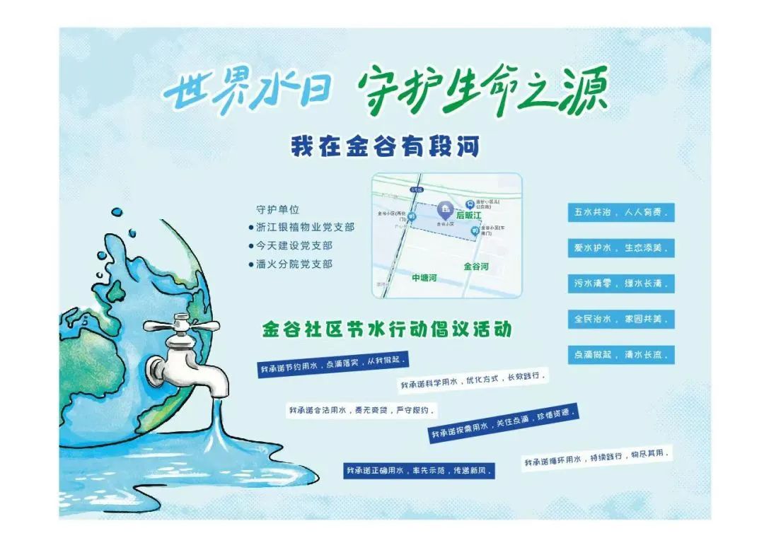 本次活动以世界水日为契机,通过多元形式推动节水意识深入人心。近年来,潘火街道金谷社区在“五水共治”方面做出诸多努力,以“我在金谷有段河”为主题,不仅联合高校青年志愿者实践团开展主题宣讲活动,还助力各级河长、行政执法中队多次对辖区河道中的地笼、网箱和各类垃圾进行清理。银禧服务集团会一直配合金谷社区共通推进节水活动,从自身做起。节水是一项长期行动,未来我们将持续开展相关活动,与大家携手共建绿色家园。