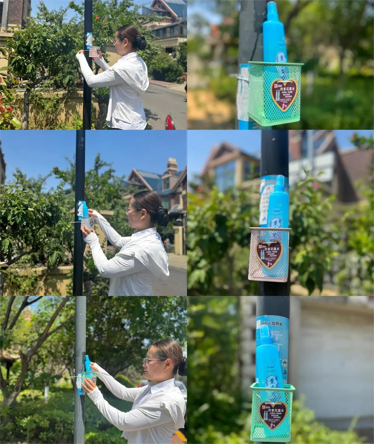 夏季园区草木繁茂,蚊虫肆虐,为了让业主在园区休闲娱乐时不被蚊虫叮咬,我们在园区多点位置放置共享花露水,并贴上温馨提示,供业主随时取用,给业主这个夏天默默无“蚊”的守护。