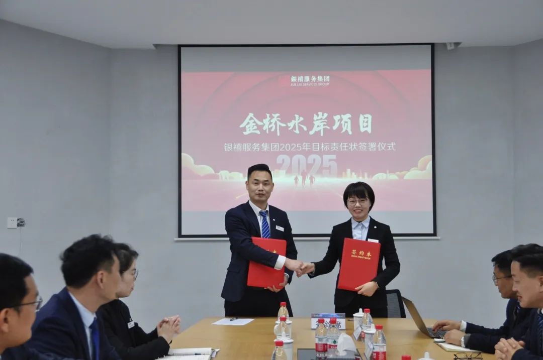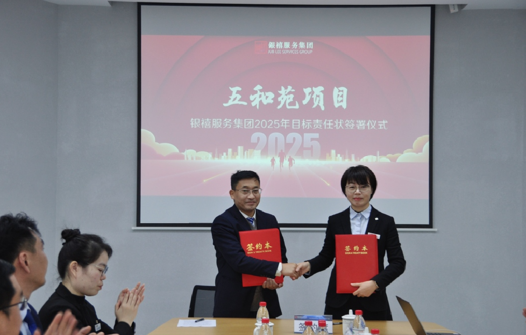 2月25日,银禧服务集团浙江区域公司召开目标责任状签订会,集团董事长李晨辉先生、浙江区域公司总经理吴多响先生、副总经理胡伟能女士、各部门及项目负责人参加了本次会议。
