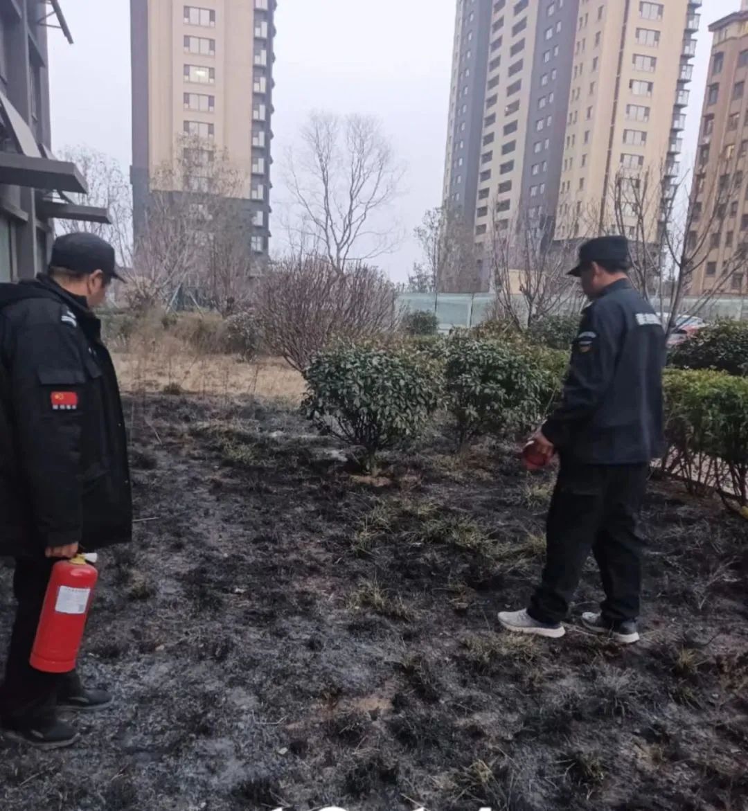 2024年3月14日下午18:08,钓鱼一号院项目监控室接到业主电话,10号楼南侧小院内草坪着火,产生大量烟雾。接到火警通知后,物业人员快速响应,秩序夜班班长戚东立即联系巡逻队员刘义汉,两人立即赶到现场处置火情。