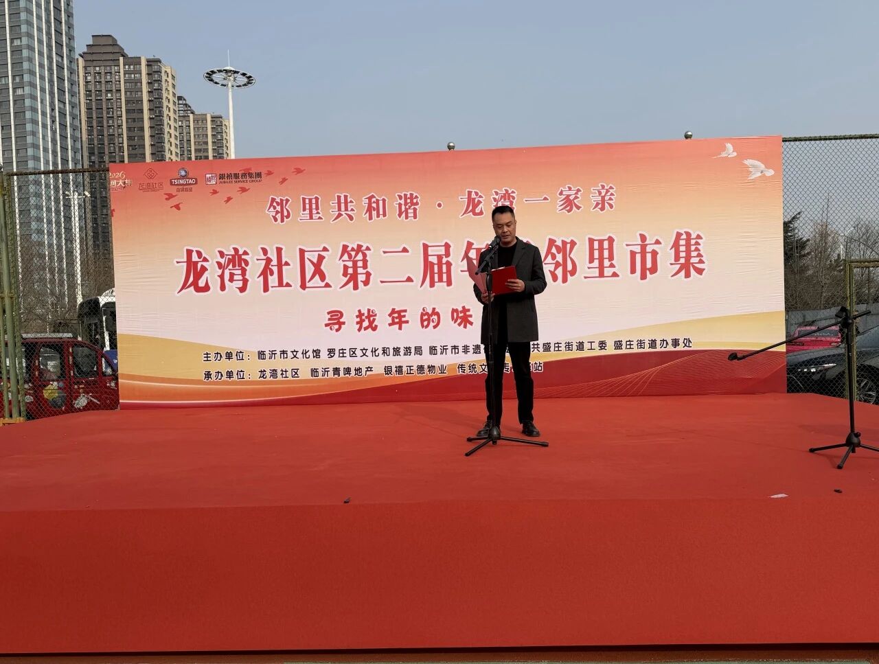 腊月渐深,年味愈浓。1月31日,龙湾社区第二届年货邻里市集热闹开集!本次活动由临沂市文化馆、罗庄区文化和旅游局、临沂市非遗研究会、中共盛庄街道工委、盛庄街道办事处主办,龙湾社区、临沂青啤地产、银禧物业、传统文化传习驿站共同承办,为业主打造一个集传统年味、社区温情与文化体验于一体的新春聚会。