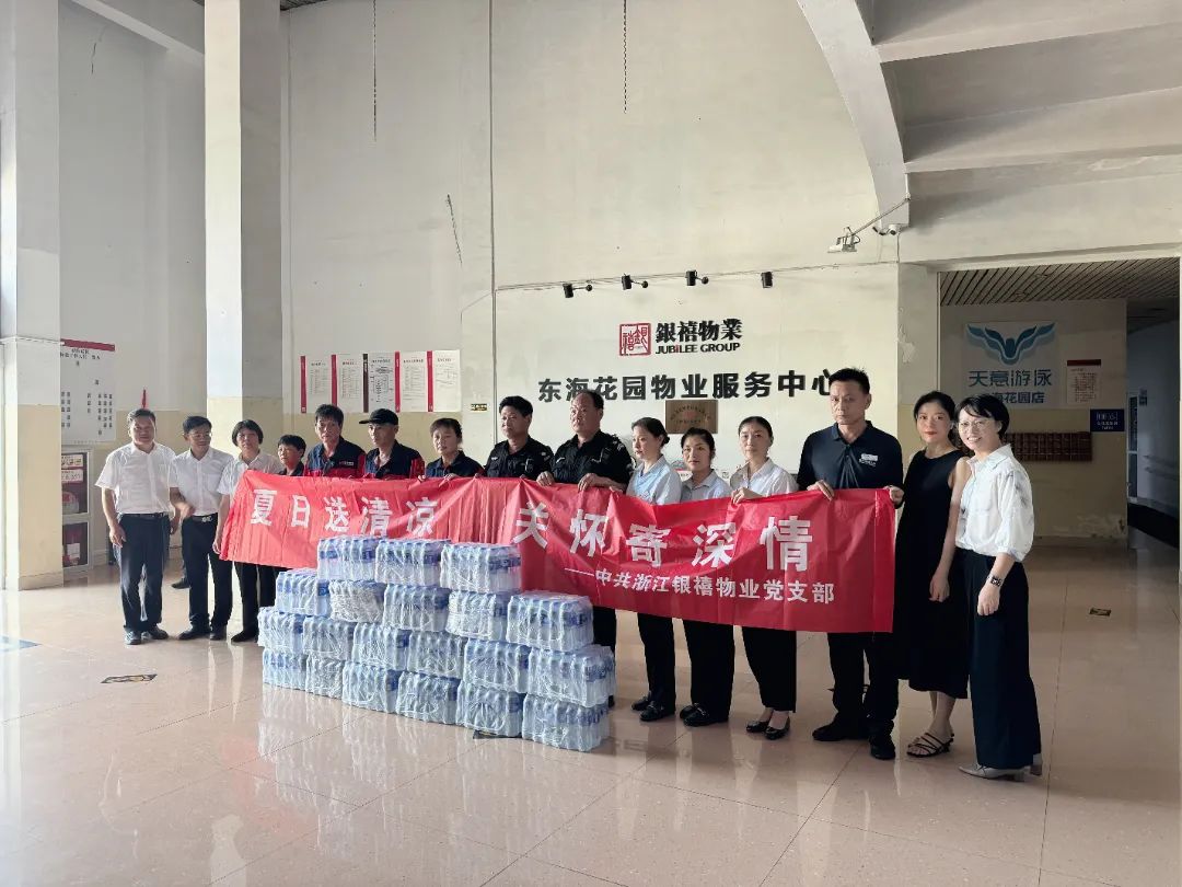 在烈日的炙烤下,劳动者们以不屈不挠的精神诠释了职业的崇高与奉献,而中共浙江银禧物业党支部的同仁们则以实际行动,展现了责任与担当,践行了为人民服务的初心与使命。此次“夏日送清凉”活动,不仅是对员工辛勤付出的诚挚谢意与高度认可,更是中共浙江银禧物业党支部凝聚人心、激发斗志的重要举措。